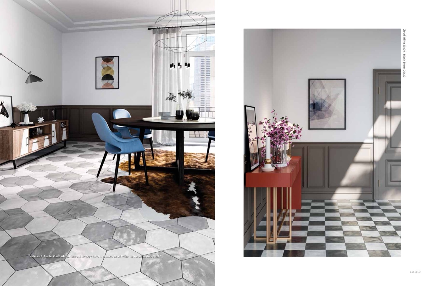modulare 9: Rombo Cloud White, Metropolitan Grey 13,7x24 . Esagona Cloud White, Metropolitan Grey 24x27,7