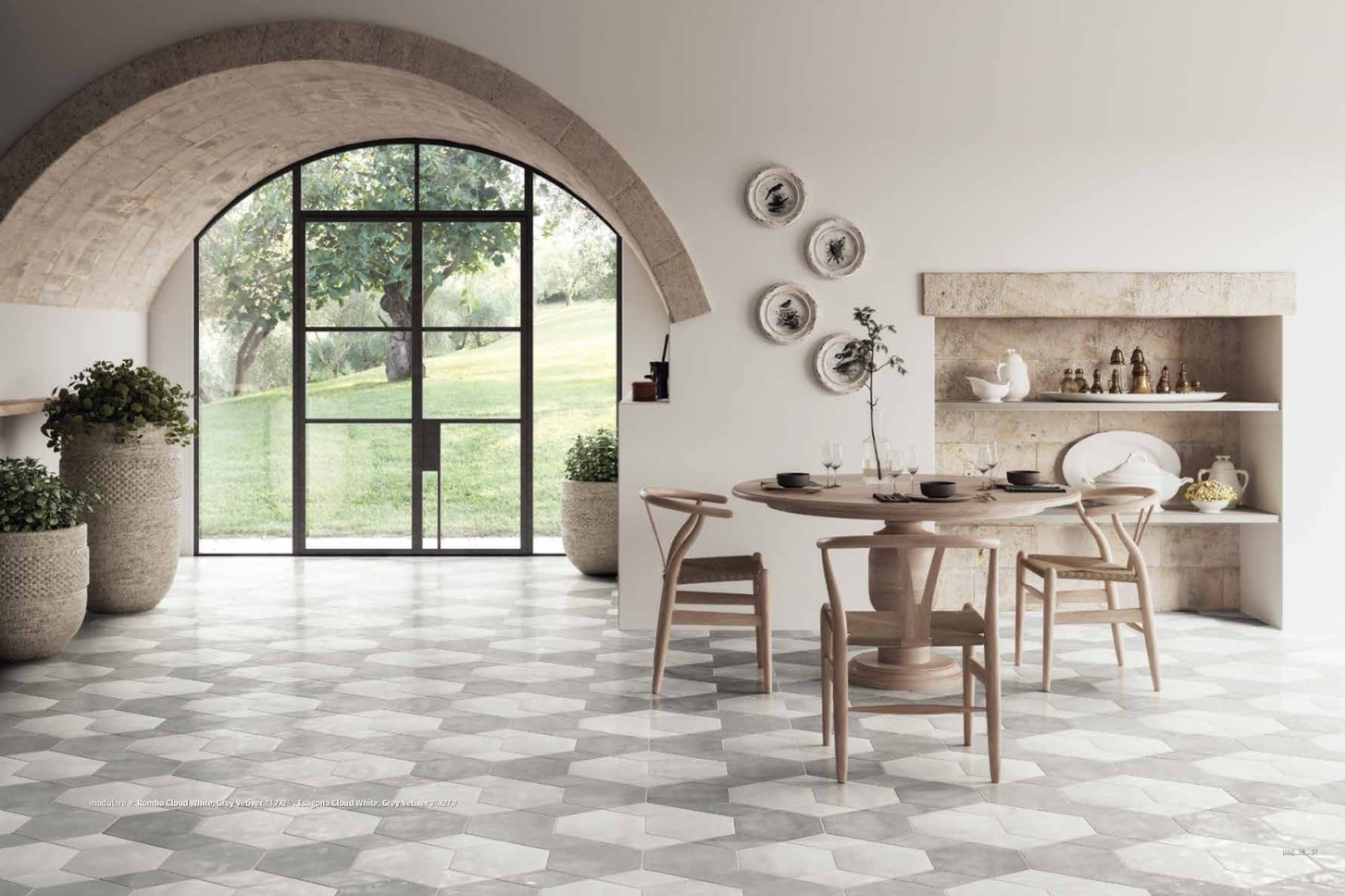 modulare 9: Rombo Cloud White, Grey Vetiver 13,7x24 . Esagona Cloud White, Grey Vetiver 24x27,7