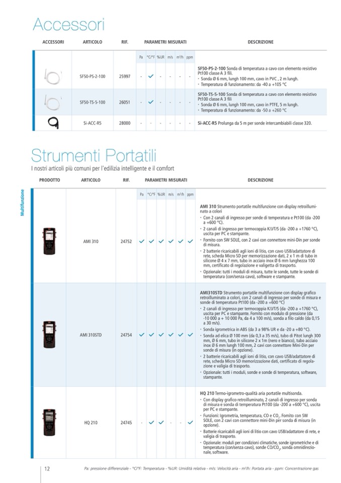 temperatura (con/senza cavo), sonde CO/CO