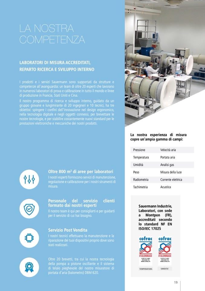 I prodotti e i servizi Sauermann sono supportati da strutture e
