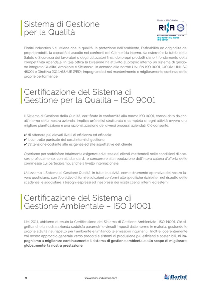 Fiorini Industries S.r.l. ritiene che la qualità, la protezione dell’ambiente, l’affidabilità ed originalità dei