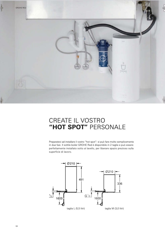 in due fasi. Il sottile boiler GROHE Red è disponibile in 2 taglie e pu