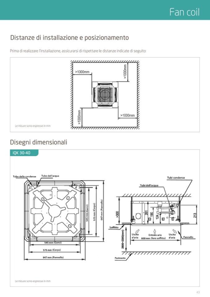 Prima di realizzare l’installazione, assicurarsi di rispettare le distanze indicate di seguito: