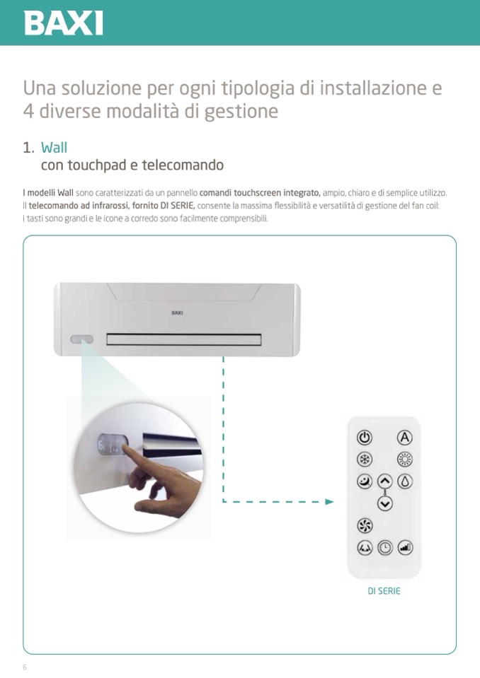 I modelli Wall sono caratterizzati da un pannello comandi touchscreen integrato, ampio, chiaro e di semplice utilizzo.
