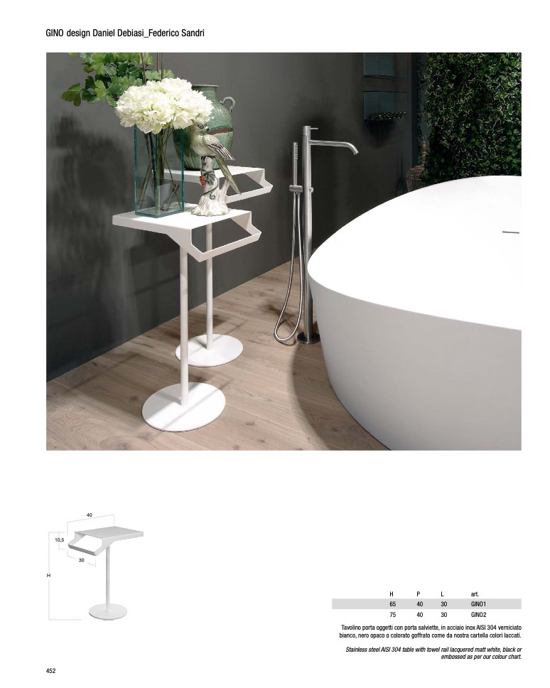 Tavolino porta oggetti con porta salviette, in acciaio inox AISI 304 verniciato