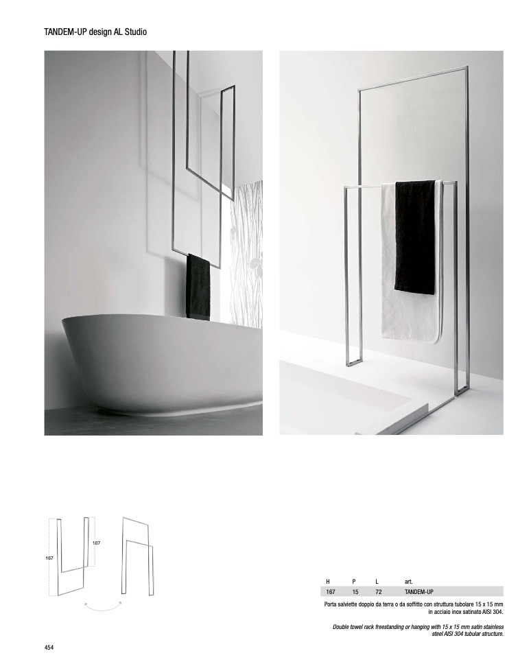 Double towel rack freestanding or hanging with 15 x 15 mm satin stainless