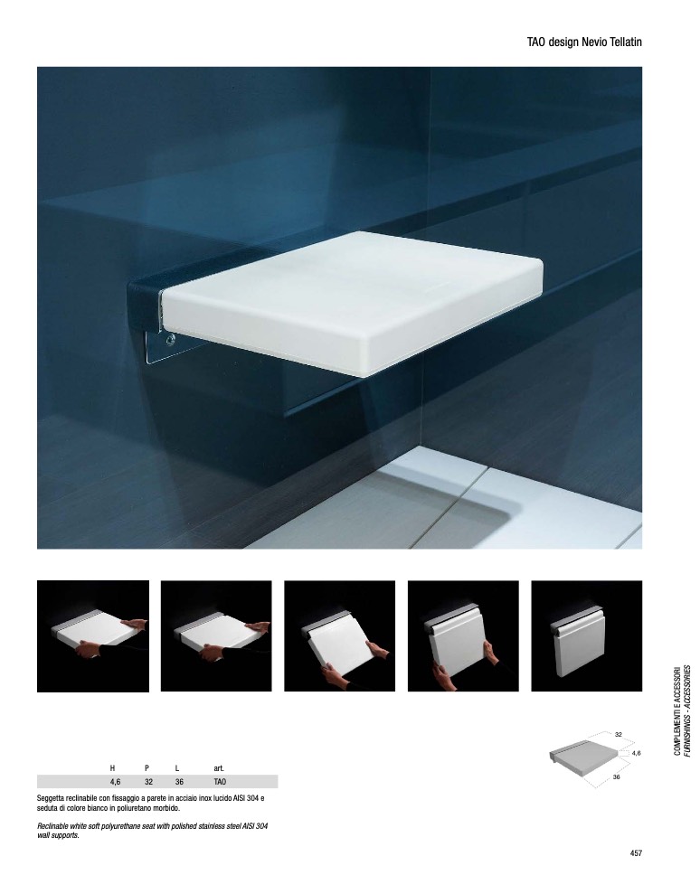 Seggetta reclinabile con fissaggio a parete in acciaio inox lucido AISI 304 e
