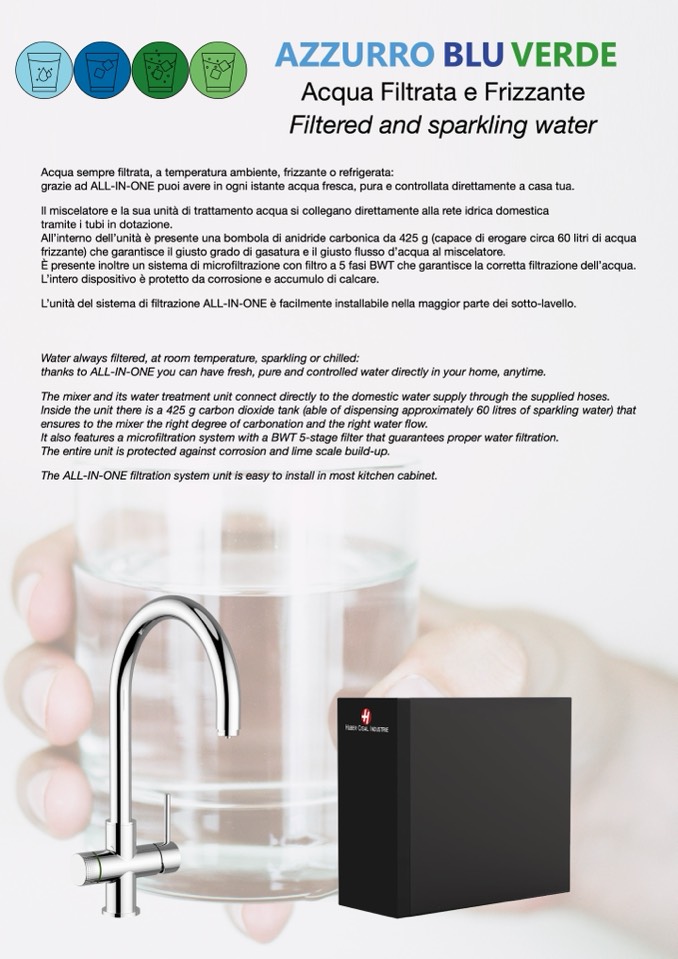 thanks to ALL-IN-ONE you can have fresh, pure and controlled water directly in your home, anytime.