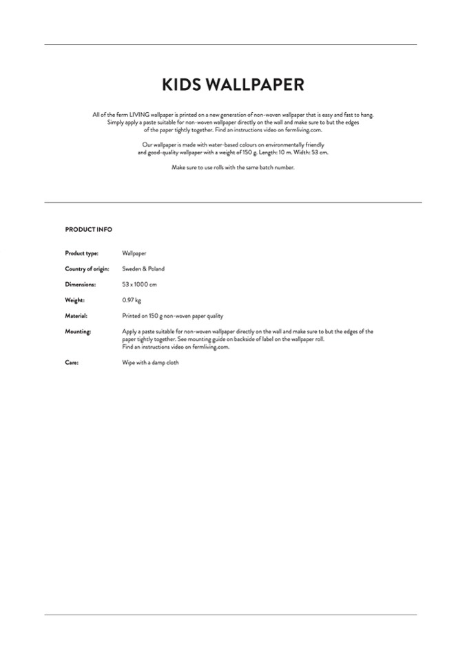 All of the ferm LIVING wallpaper is printed on a new generation of non-woven wallpaper that is easy and fast to hang.