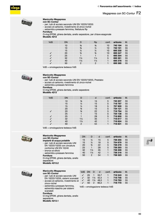 - per: tubi di acciaio secondo UNI EN 10220/10255, Prestabo