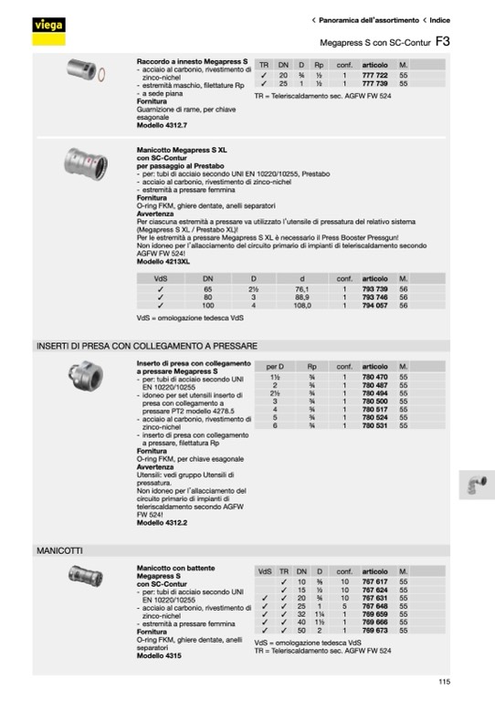 - per: tubi di acciaio secondo UNI EN 10220/10255, Prestabo