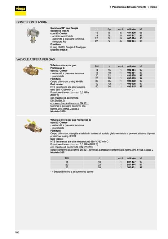 corpo conforme alla norma EN 331, terminali a pressare conformi alla norma UNI 11065 Classe 2