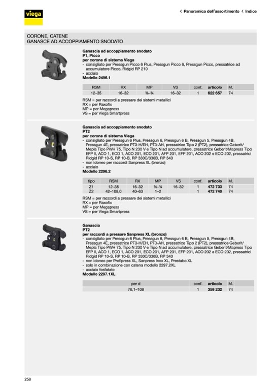 - non idoneo per Profipress XL, Sanpress Inox XL, Prestabo XL