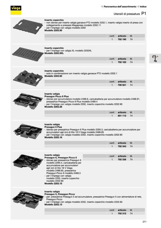 - per l’impiego con valigia modello 2202, inserto coperchio modello 2202.90