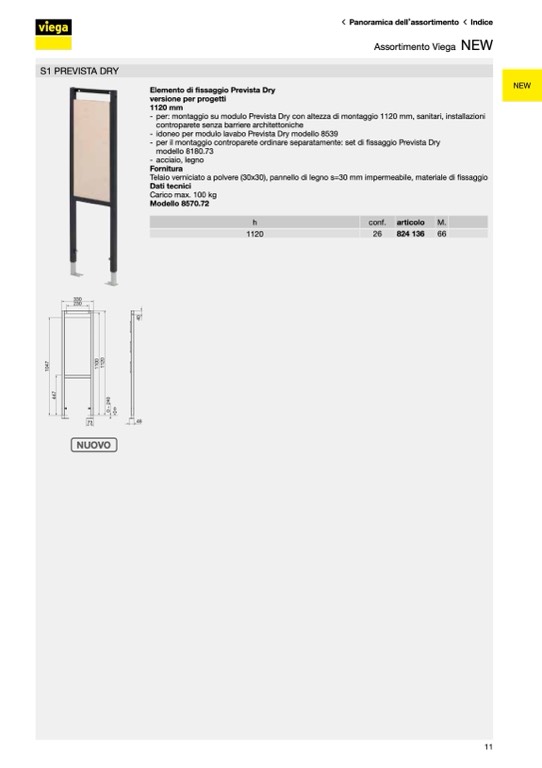 - per: montaggio su modulo Prevista Dry con altezza di montaggio 1120 mm, sanitari, installazioni