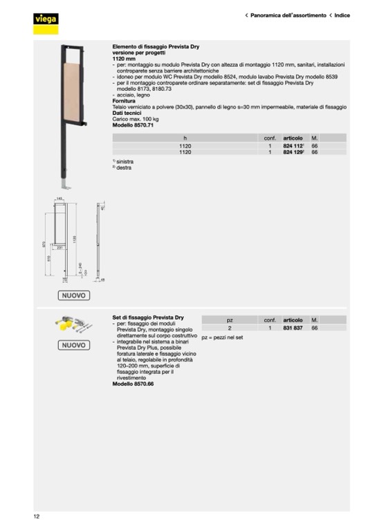 - per il montaggio controparete ordinare separatamente: set di fissaggio Prevista Dry