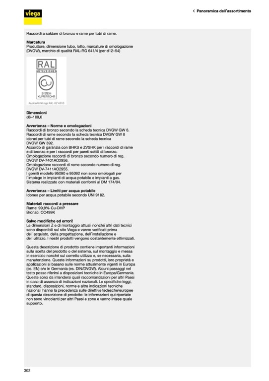 Raccordi di rame secondo la scheda tecnica DVGW GW 8