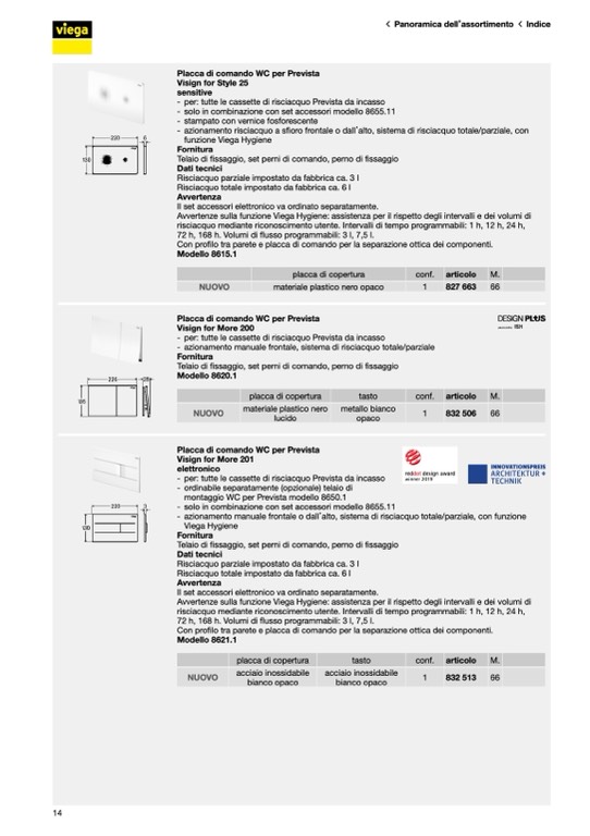 Placca di comando WC per Prevista