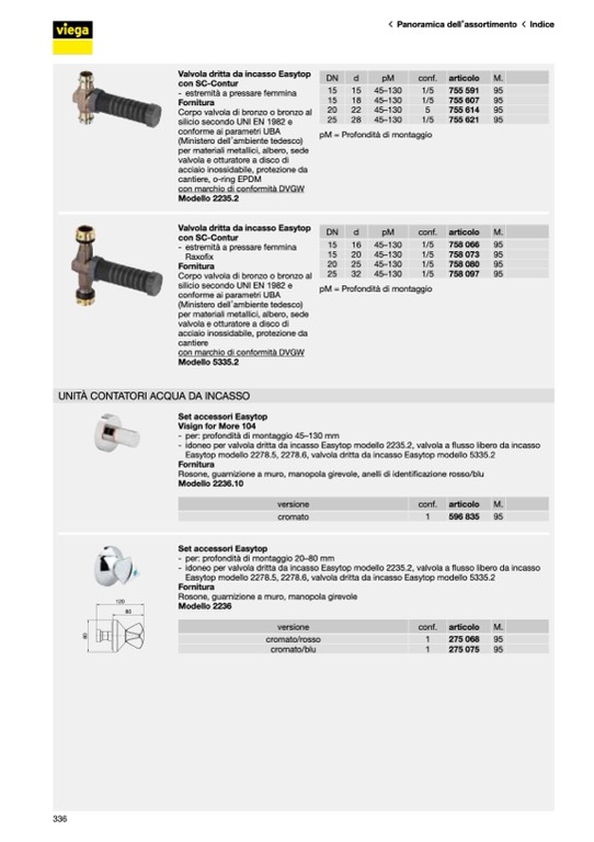 Easytop modello 2278.5, 2278.6, valvola dritta da incasso Easytop modello 5335.2