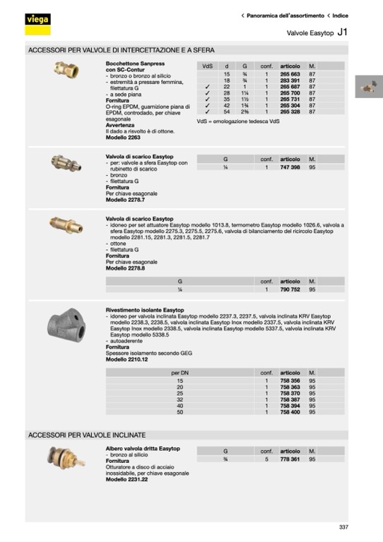 modello 2238.3, 2238.5, valvola inclinata Easytop Inox modello 2337.5, valvola inclinata KRV
