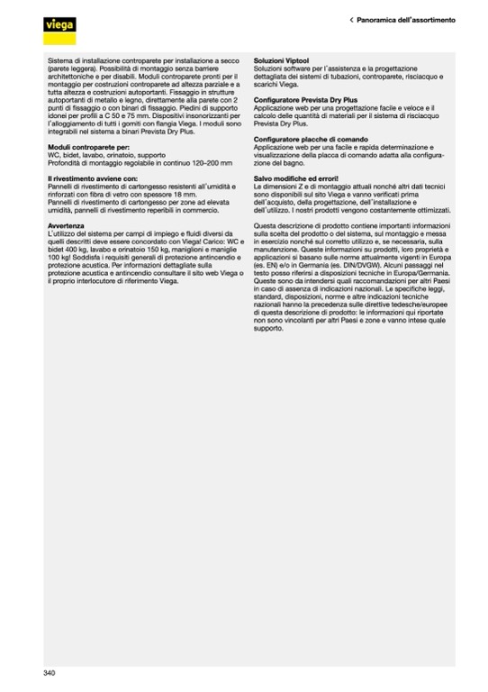quelli descritti deve essere concordato con Viega! Carico: WC e
