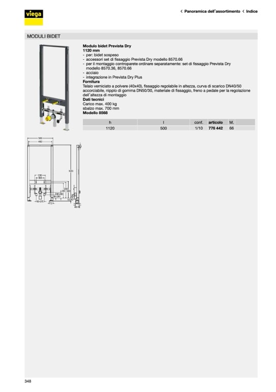 - per il montaggio controparete ordinare separatamente: set di fissaggio Prevista Dry