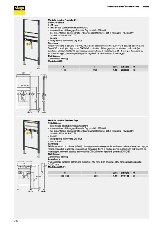 - per il montaggio controparete ordinare separatamente: set di fissaggio Prevista Dry