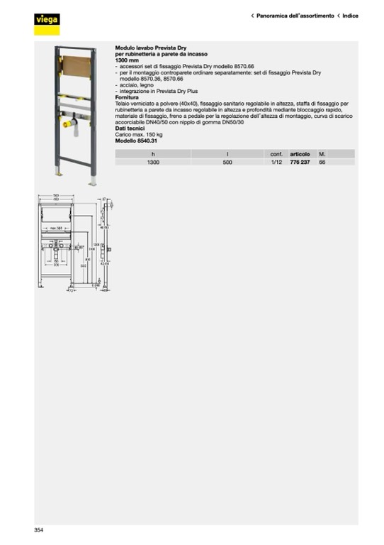 - per il montaggio controparete ordinare separatamente: set di fissaggio Prevista Dry