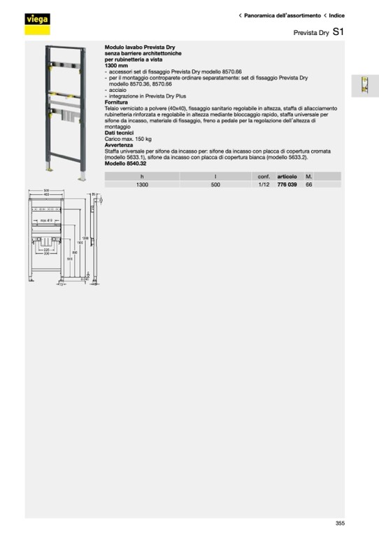 - per il montaggio controparete ordinare separatamente: set di fissaggio Prevista Dry
