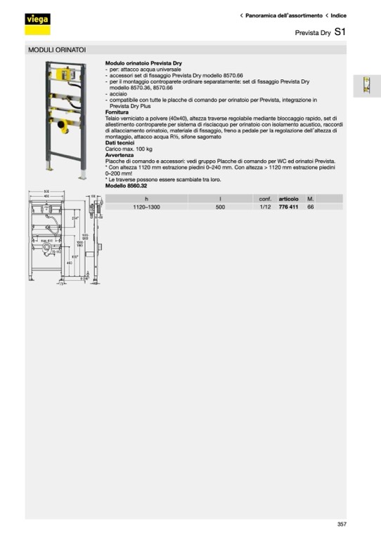 - per il montaggio controparete ordinare separatamente: set di fissaggio Prevista Dry