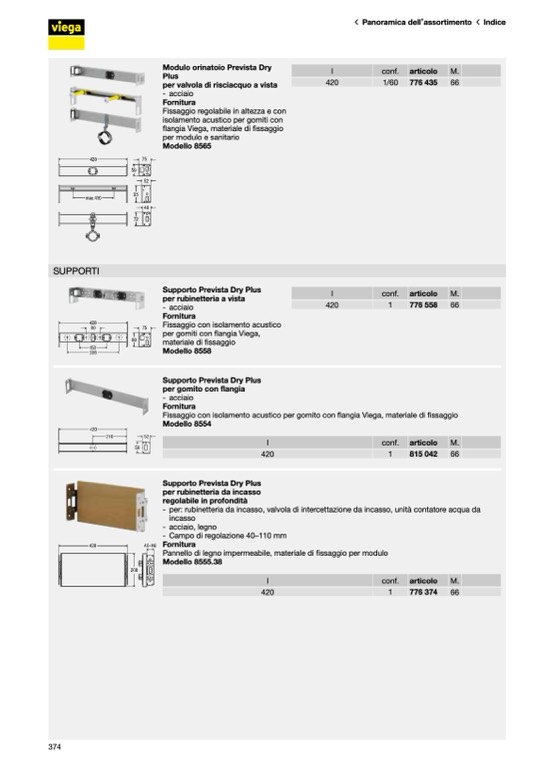 Fissaggio con isolamento acustico per gomito con flangia Viega, materiale di fissaggio