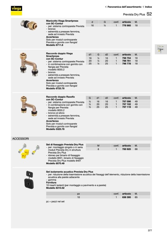 Set di fissaggio Prevista Dry Plus