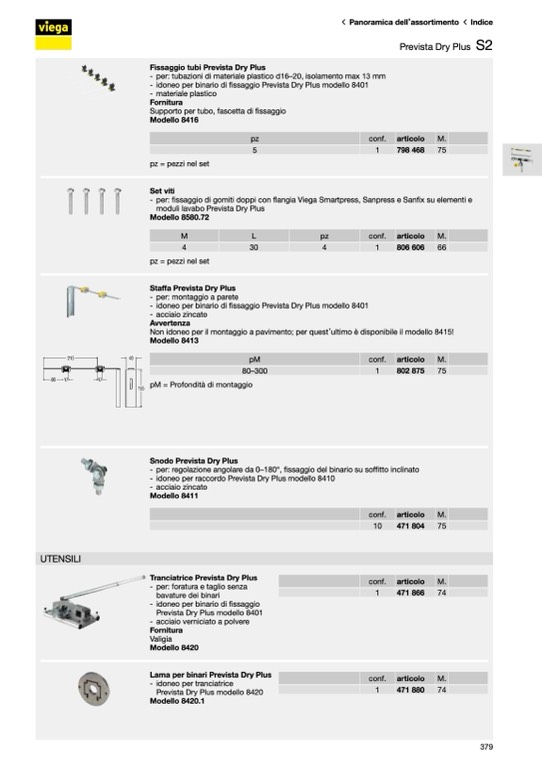 - idoneo per binario di fissaggio Prevista Dry Plus modello 8401