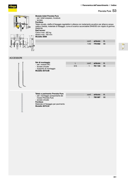 Telaio zincato, staffa di fissaggio regolabile in altezza con isolamento acustico per attacco acqua
