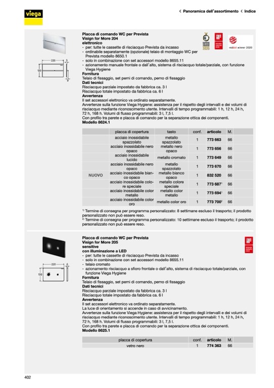- azionamento risciacquo a sfioro frontale o dall’alto, sistema di risciacquo totale/parziale, con
