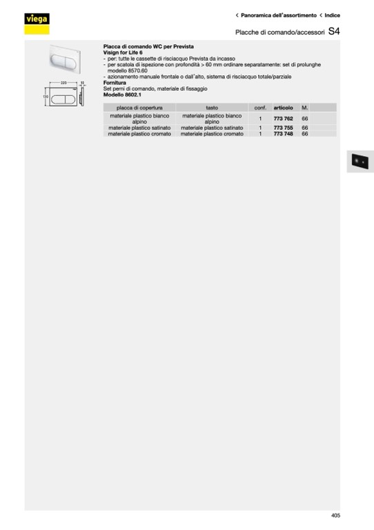 Placca di comando WC per Prevista