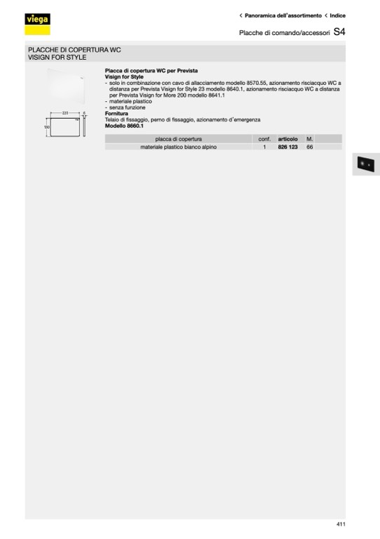 distanza per Prevista Visign for Style 23 modello 8640.1, azionamento risciacquo WC a distanza