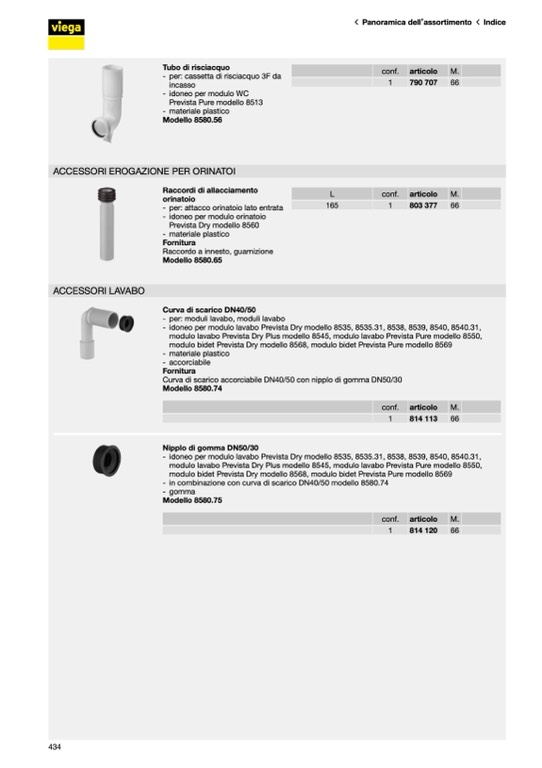 - in combinazione con curva di scarico DN40/50 modello 8580.74