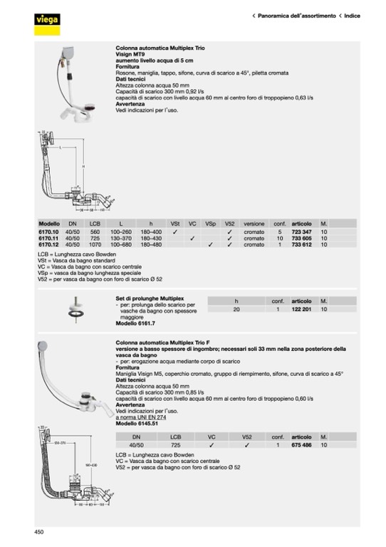 V52 = per vasca da bagno con foro di scarico Ø 52