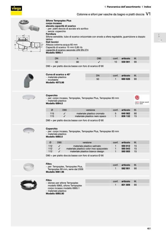 D90 = per piatto doccia basso con foro di scarico Ø 90