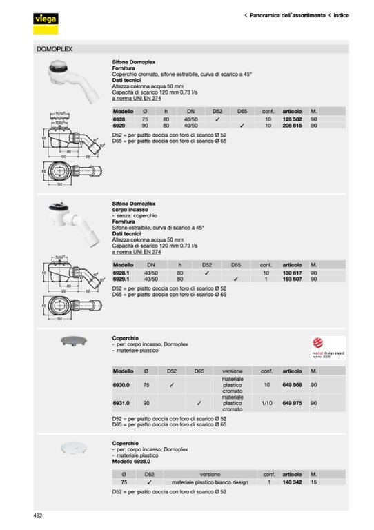 D52 = per piatto doccia con foro di scarico Ø 52