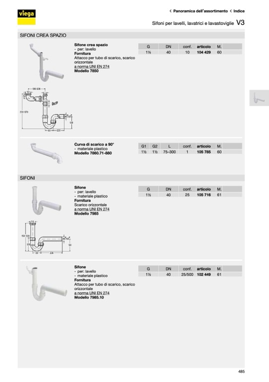 Sifoni per lavelli, lavatrici e lavastoviglie