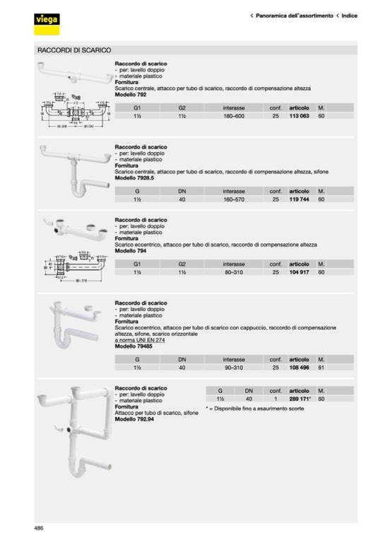 Scarico centrale, attacco per tubo di scarico, raccordo di compensazione altezza, sifone