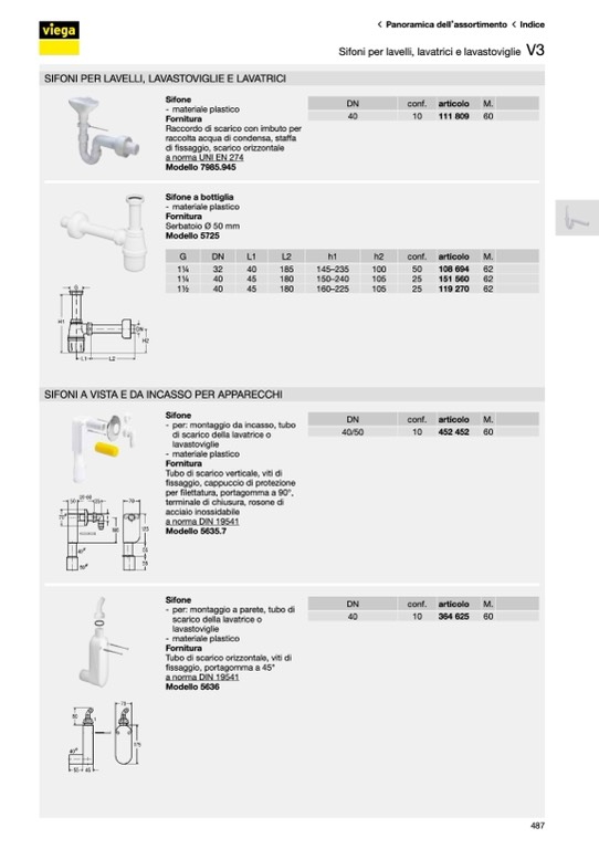 Sifoni per lavelli, lavatrici e lavastoviglie
