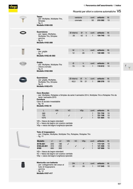 Ricambi per sifoni e colonne automatiche