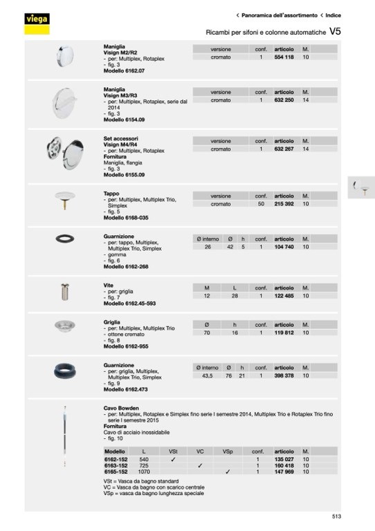 Ricambi per sifoni e colonne automatiche