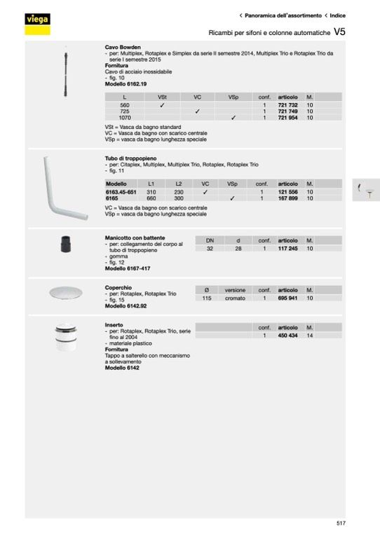 Ricambi per sifoni e colonne automatiche