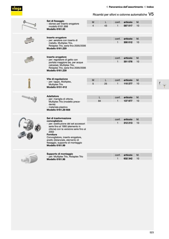 Ricambi per sifoni e colonne automatiche