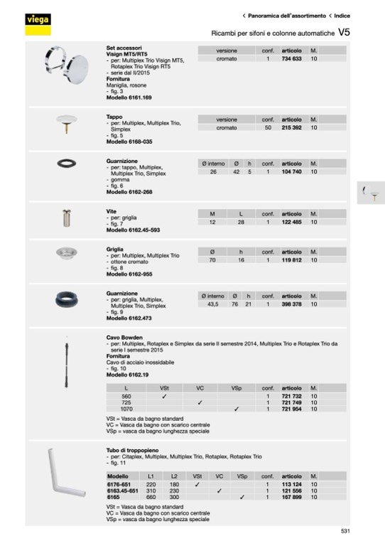 Ricambi per sifoni e colonne automatiche