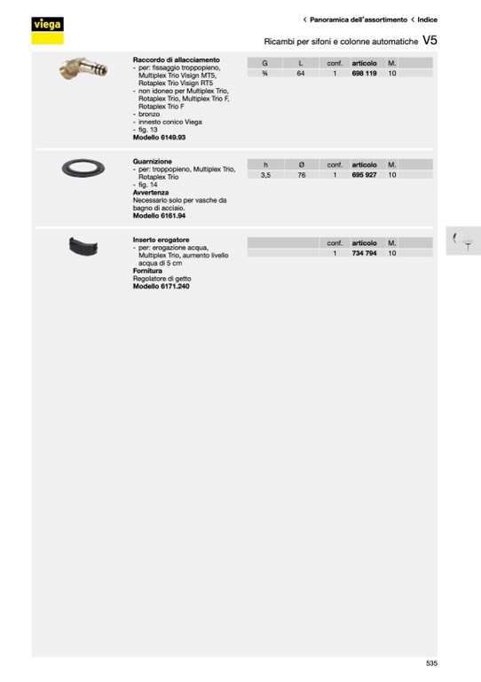 Ricambi per sifoni e colonne automatiche